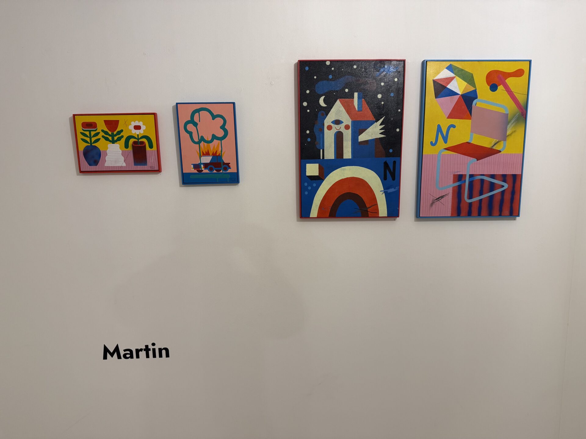 Martin Krusche (1982) “Der in Bayern geborene Künstler und Illustrator lebt und arbeitet seit 2003 in Berlin. Er mag es “oldschool” und arbeitet am liebsten analog – mit Stift, Tinte, Pinsel und Papier; zeichnen, malen, kleben, sprühen, drucken. Als selbstständiger Illustrator hat er schon mit vielen bekannten internationalen Firmen gearbeitet. Als freischaffender Künstler lebt er seinen ganz individuellen Stil aus – ohne sich an etwaige Vorgaben undWünsche der Kunden halten zu müssen. Sein Stil ist farbenfroh und bedient sich auf eine bewusst naive Weise der Grundlagen der Illustration, um diese dann mit der ihm ganz eigenen Note umzusetzen. Martin Krusche arbeitet mit den verschiedenstenTechniken und auch im Bereich des Kunstdrucks legt er selber gerne Hand an, Schablonen-, und Siebdruck gehören zu seinen bevorzugten Drucktechniken. Seine Arbeiten entstehen so in Kleinstauflagen und sind von der Vorlage bis zum Druck selbst gemacht. Seine Vorliebe für das analoge Arbeiten zeigt sich auch in der Machart und Haptigkeit seiner Papierarbeiten, die durch das Material und dessen Beschaffenheit gekennzeichnet sind.” Whatsart.de