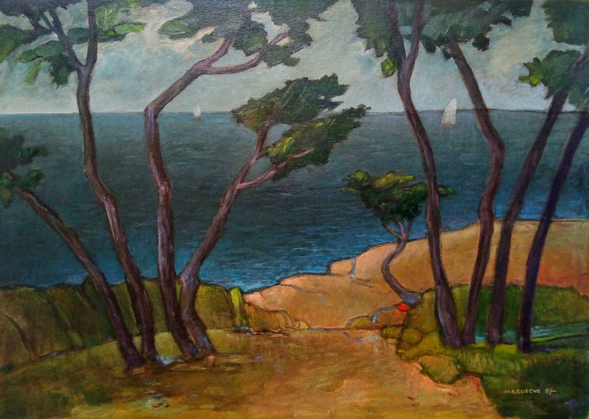 Helmuth Krusche(1927-1997) gebürtiger Gablonzer, unterrichtete fast 30 Jahre lang angehende Glas- und Porzellanmaler an der Staatlichen Berufsfachschule für Glas und Schmuck in Kaufbeuren-Neugablonz. Im Herzen war er jedoch mehr Künstler als Lehrer. Bleistift, Zeichenfeder, Kugelschreiber und Radiernadel beherrschte er virtuos. Die Akribie, die diese grafischen Techniken verlangen, kam seiner erzählerisch-illustrativen Darstellungsweise entgegen. Er bevorzugte einfache, schlichte Naturmotive. Seine Zeichnungen, Ölgemälde und Aquarelle strahlen Stille und Beschaulichkeit aus.